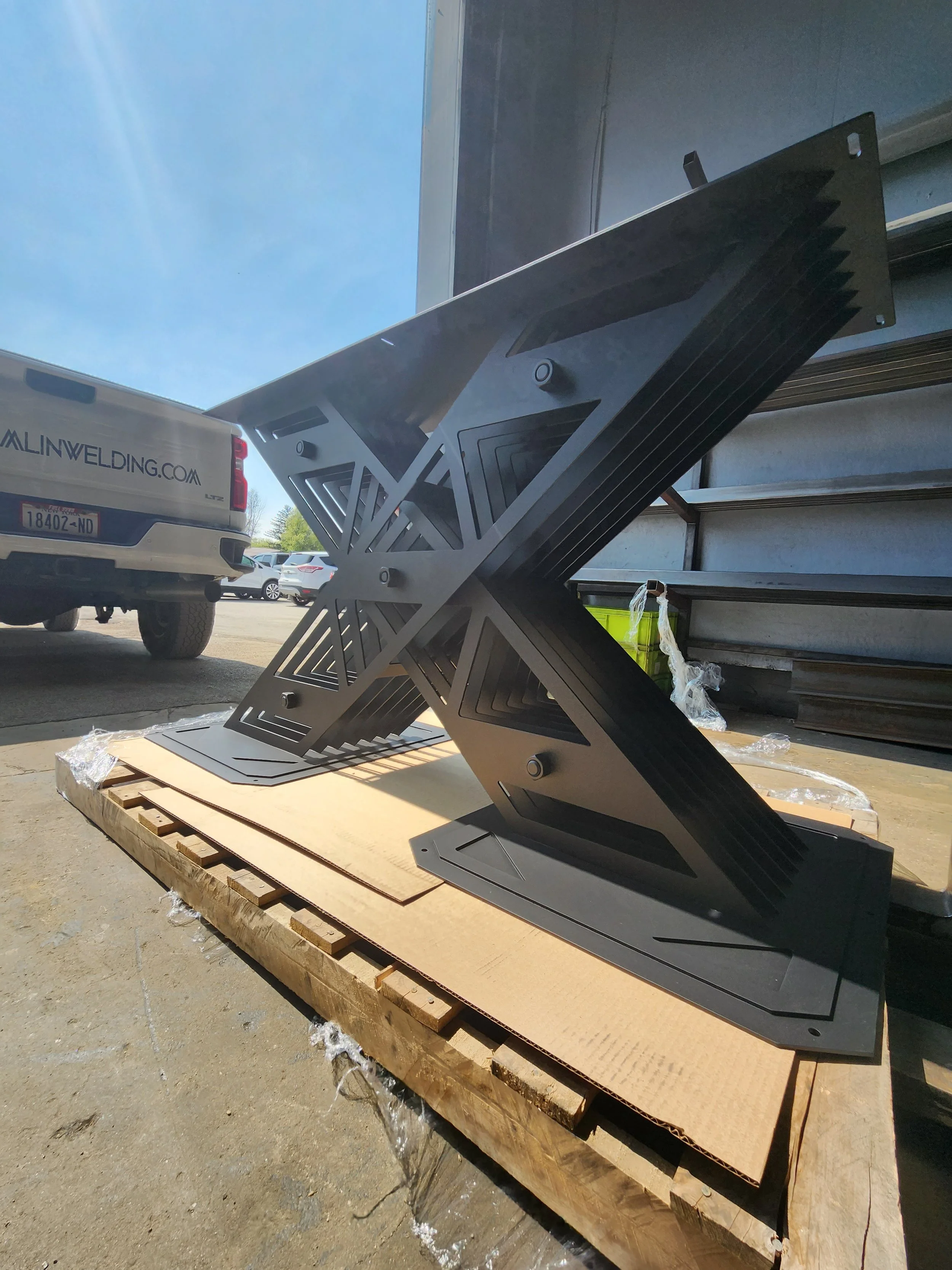 This listing is for a custom-designed base made of precision laser-cut panels. This modern/industrial-style X table base will be sure to wow your guests or clients!